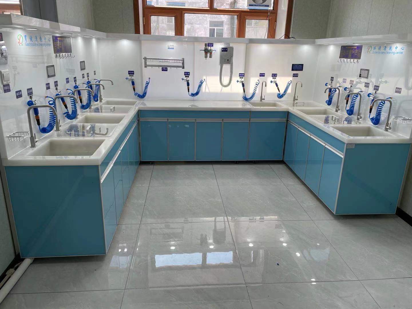 内窥镜清洗工作站是我公司根据卫生部《内镜清洗技术操作规范(2016年版)》的要求,结合国外先进技术及工艺,产品采用人性化及标准化设计、选材精良考究、配置灵活性强、自动化程度高、操作简洁方便、使用安全可靠、性价比高、清洗效果显著,广泛适合国内不同规模医疗机构开展内镜及其它器械清洗工作,是一种为内镜诊疗工作中对内镜清洗的设备。它由台面/清洗槽,柜体/功能背板,豪华内镜干燥保养台,自动灌流器,空压机,高压水枪,专用水龙头,内镜吹干机,灌流器自动接头,水源中心控制系统,中心电源控制系统,中心气体处理器,过滤水装置,专用方槽盖,内镜侧漏系统等,可选配追溯系统,超声波清洗机,纯水机,内镜转运车等。