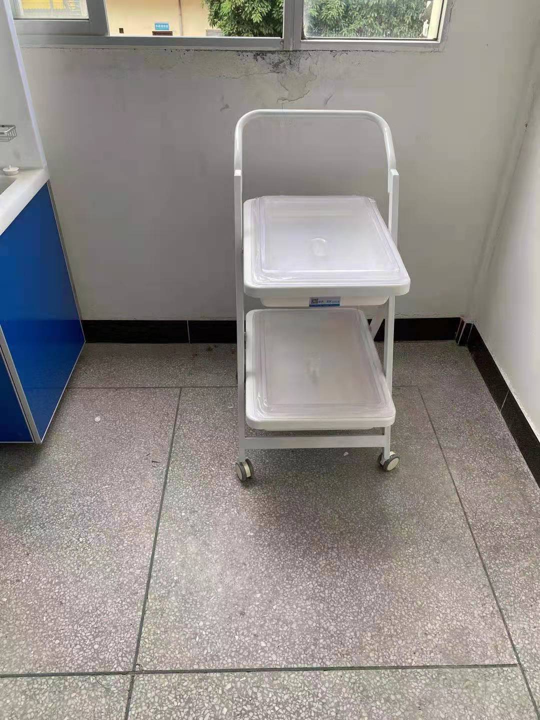 小推车二层、三层独立式设计,周转盘材料由高分子复合材料独立开模制成,车体由钢体喷塑而成,具有耐腐蚀、不沾水、车行顺畅、取放方便等优点。盘内内镜存放导航隔条使污染部分分离。多层设计使客户在使用过程中可将清洁和污染的内镜分层标明后置放,可达到高效周转,避免交叉感染等功效。